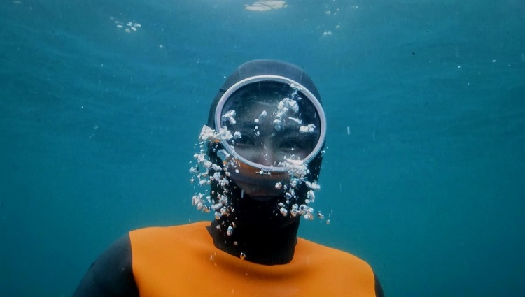 해녀가 되고, 기후 위기로 변해가는 산호 군락, 해조숲의 변화를 마주하게 된 명효 씨는 제주 바다의 생태적 회복력을 되찾기 위한 ‘해양시민 아카이비스트’(Marine Citizen Archivist)로 해양생태계를 조사, 기록, 추적하는 활동을 하고 있다. 그래서 바다로 들어가는 명효 씨의 테왁 속에는 항상 카메라가 담겨있다.