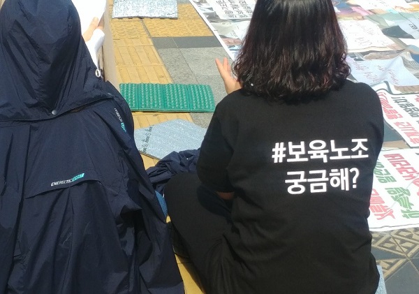 계약 해지된 32명 중 5명이 남아 시청 앞에 천막을 쳤다. 적은 인원이었으나, 그래도 흩어지지 않고 복직 싸움을 할 수 있던 이유는 노동조합에 있었다. 지난해 8월 그녀와 동료들이 노동조합에 가입했다. 어쩌면 해고 사유도 노동조합에 있는지 모른다. 노동조합이 교섭을 요청하고 얼마 후, 센터는 대체교사 지원사업 중단 계획을 제출했으니까.