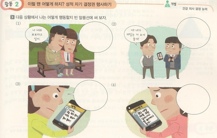 “잘못된 성적 욕망의 추구와 행동은 도덕적 문제를 일으킬 뿐만 아니라 범죄로 이어지기도 한다. 따라서 청소년기에는 성에 대해 올바른 인식과 태도를 갖추어야 한다.”(중학교 사회, 지학사: 130)