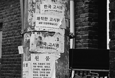 “방에 조그만 냉장고랑 티비랑 침대, 책상 있어요. 층별로 남자여자 분리되어 있어서 편해요. 남자여자 분리 안 된 고시원에 한 달 정도 살아봤는데 너무 불편해서 못살겠더라구요. 방에 있을 때는 주로 TV를 봐요. 드라마랑 예능 프로그램. 재미있는 게 얼마나 많은데요. 출근이 늦으니까 새벽까지 TV보다가 잠들어요. 낮밤 바뀌어서 힘들 때도 있어요.”